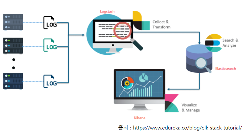 Elasticsearch는 검색을 위해 단독으로 사용되기도 하며 ELK Elasticsearch / Logstatsh / Kibana )스택으로 함께 사용되기도 합니다.