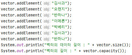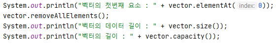 * vector.elementAt(0) // 인덱스 기준 첫번째 내용을 꺼내온다.