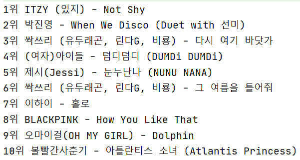 1위 싹쓰리 (유두래곤, 린다G, 비룡) - 다시 여기 바닷가