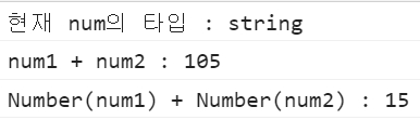 console.log("현재 num의 타입 : " + (typeof num1)); // String