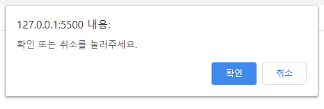 | window.confirm() | 사용자에게 메시지를 보여주고, 확인이나 취소를 누르면 그 결과를 불린 값으로 반환합니다. |