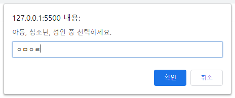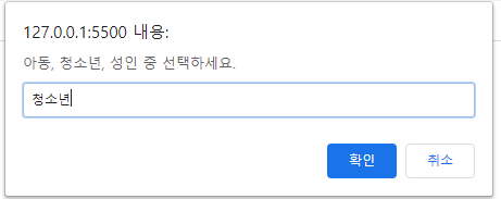 let input = prompt('아동, 청소년, 성인 중 선택하세요.');
