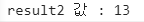 console.log(`result2 값 : ${result2}`);