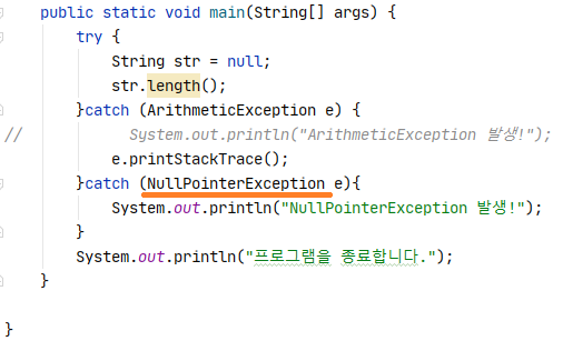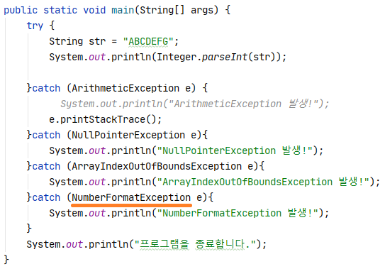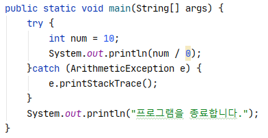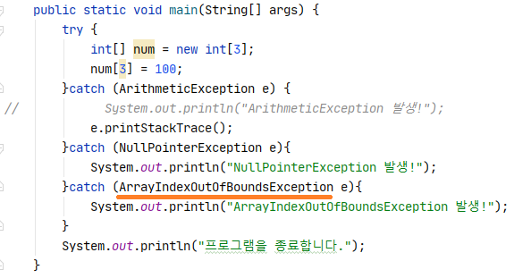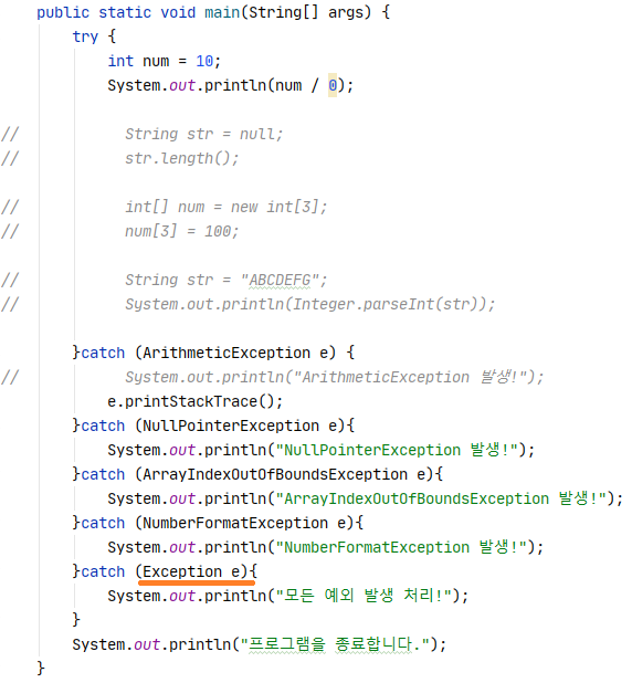 }catch(예외 상황에 맞는 클래스1 객체1){