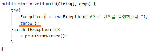 자바에서는 throw 키워드를 사용하여 강제로 예외를 발생시킬 수 있습니다.