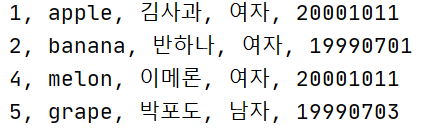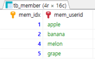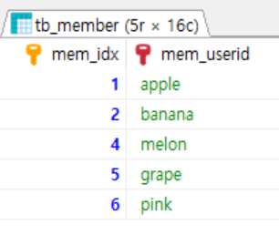 String sql = "SELECT mem_idx, mem_userid, mem_name, mem_gender, mem_birthday FROM tb_member";