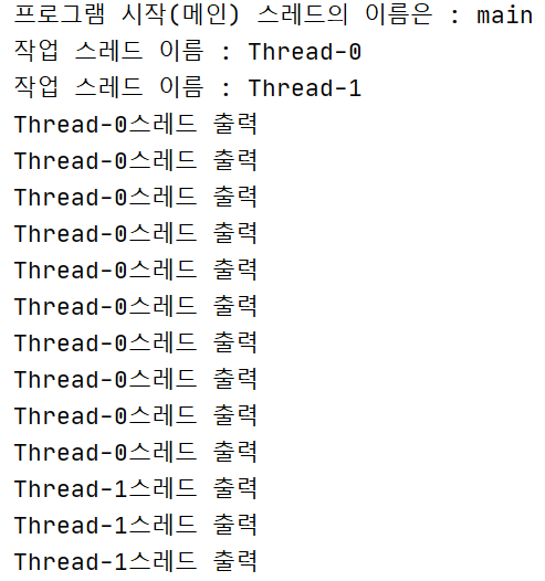 System.out.println("작업 스레드 이름 : " + thB.getName());